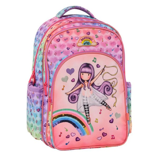 Многофункционална ученическа раница Santoro Gorjuss Little Dancer с анатомичен гръб и анатомични презрамки.Материал: Полиестер 600D. Размери: 44 x 30 x 14 см.