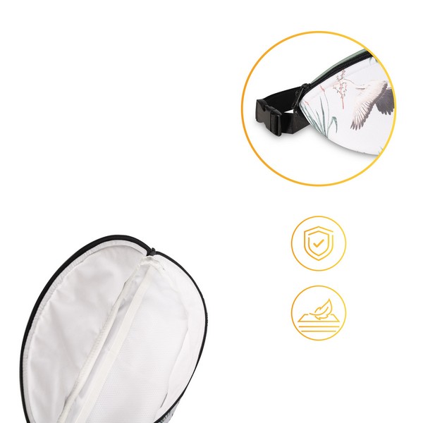 Лесното закопчаване с тик-так прави обличането на чантата през кръста бързо и лесно, а регулируемата презрамка ви позволява перфектно да я настроите според фигурата си. Вътре има два мрежести джоба, които са чудесни за съхранение на малки предмети – като ключове, кърпички или козметика. Отвън има джоб с цип, идеален за безопасно съхранение на ценности – телефон, документи или портфейл.