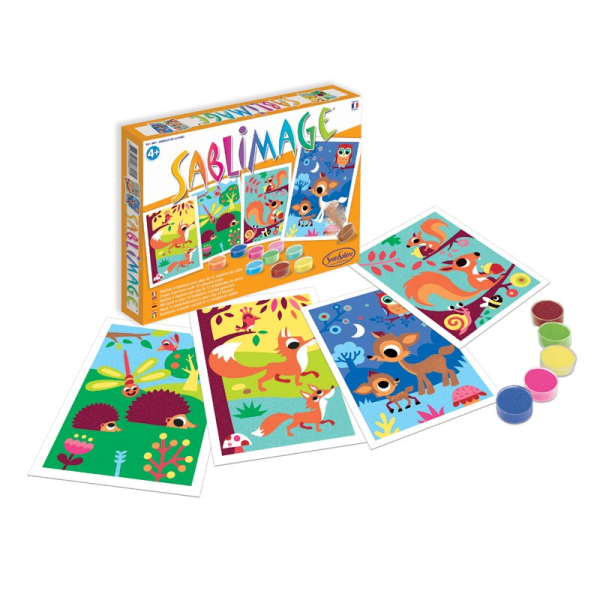 SUBLIMAGE - Серия артистични продукти за изработка на красиви картини с цветен пясък. Само отлепете предварително изрязаните участъци от картините и разпръснете цветния пясък! Игри подходящи за развитието на цветови умения и интерес към творческите занимания.