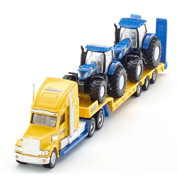 Умален модел на тир с ниска платформа за превоз на трактори.