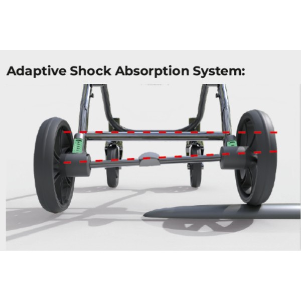 Абсорбционната система предпазва вашето бебе от потенциално вредни вибрации, които в противен случай биха могли да повлияят на развитието на мозъка и нервната му система. Чрез създаване на плавно и нежно возене, тази функция помага за предотвратяване на тревожността и насърчава спокойни, щастливи преживявания.
