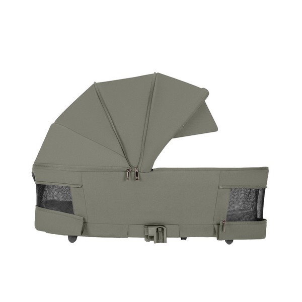 Кошът за новородено е с пълен размер, сгъваем и изработен от комбинирани материали.