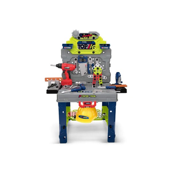 Този комбиниран комплект с инструменти и работна маса е перфектен за малки строители и любители на игри тип „направи си сам“. Включва 133 части, сред които реалистични инструменти като чук, отвертка, гаечен ключ и бормашина, както и гайки, болтове и винтове за сглобяване – всичко нужно, за да могат децата безопасно да пресъздават истински ремонти и строителни проекти. Здравата работна маса предлага достатъчно място за подреждане на инструментите и частите, като насърчава решаването на задачи и развитието на фината моторика. Идеален за въображаема игра и образователно забавление, този комплект събужда любов към строителството и инженерството в детските умове.